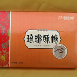 滁州名产琅琊酥糖,原名"面糖"、"董糖",起源于明朝末年。它是用纯白芝麻、白糖粉、富强粉、麦芽糖等为原料。生产出的糖块厚薄均匀,骨薄如纸,剖面层次清晰,呈螺旋体,色泽为乳白色;入口酥软,细腻无杂质,香味浓郁,甜而不腻,文人墨客赞之日:"香召云外客,味引洞中仙",营养丰富,老少皆宜。因琅琊山而名,系滁州传统名优糕点。其"味甜而不腻,糯而不粘、酥而不碎",老少咸宜,深受群众喜爱。 酥糖亦称"面糖"、"秦尤酥糖"、"董糖"。明末,滁州作坊开始以麦面、芝麻、糖为原料,经焙炒、加工而成,俗称"面糖"(小包糖)。清初,有秦、尤姓两位师傅将面糖用糯米稀骨作包衣,进行改制而成,故又称之为"秦尤酥糖"。后一位董姓师傅又将秦尤酥糖精心改制,将糯米稀骨多层次与面糖折叠,即谓之"董糖"。又有文人撰写一说:"明崇祯年间,江南名艺妓董小宛,擅长烹饪,精于制作花露,巧手会做糖食糕点。一次才子冒襄(字辟疆)生病,董小宛独出心裁以芝麻、白糖、炒面、糖稀、香油等原料,精心制作方块酥糖,给冒襄食之。"其糖"酥脆香甜、开胃心爽"。后经民间流传,人们即称此糖为"董糖"。《崇川咫闻录》也记载:"董糖,系冒巢民(冒襄之号)妾董小宛所造。" 民国初年,滁城多有前店后坊,制作糕点。"章三益"、"卞源昌"、"曹恒兴"等店号制作的酥糖(亦名董糖),远近闻名。